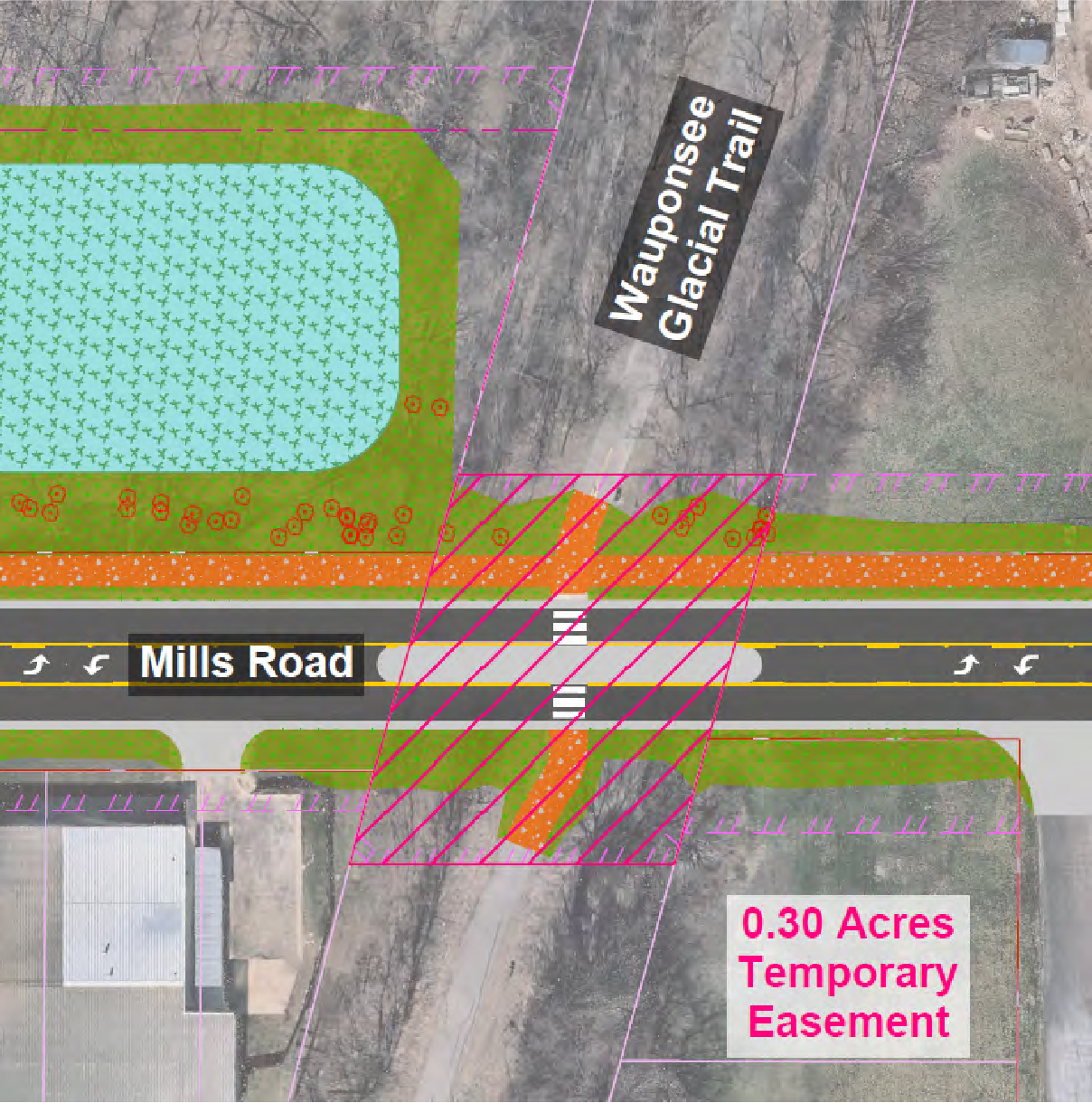 The project impacts the Wauponsee Glacial Trail and the Old Plank Road Trail. These trails are under the jurisdiction of the Forest Preserve District of Will County (FPDWC). Improvements within FPDWC property include:
