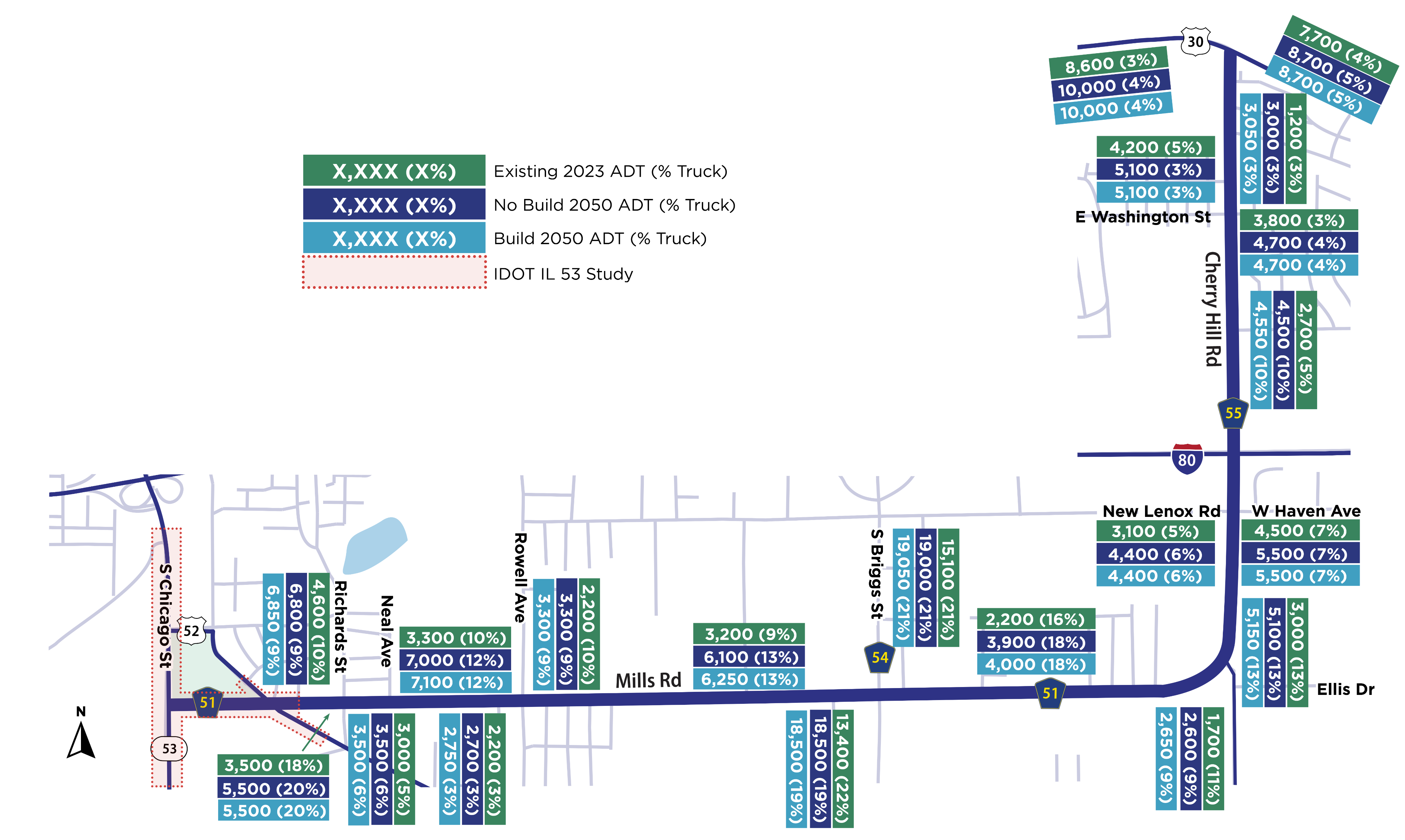 - 2050 traffic projections were provided by Chicago Metropolitan Agency for Planning (CMAP).